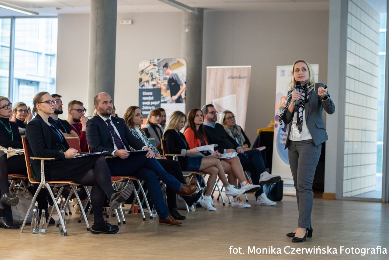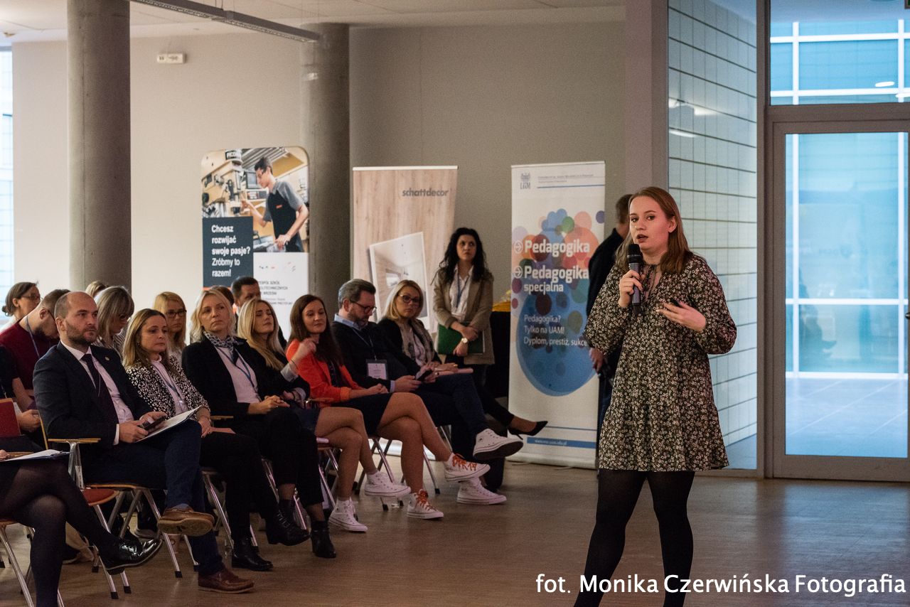 Był też moment, w którym wybrani uczestnicy akcji, Doradztwo dla Doradcy. Wizyty studyjne doradców zawodowych w wielkopolskich przedsiębiorstwach” – przedstawili ze swojej perspektywy korzyści jakie dla siebie wynieśli z wizyt studyjnych. Wypowiedzieli się doradca zawodowy Małgorzata Szynka, przedstawicielka pracodawcy BLUM oraz Paulina Drozdowska – jedna z koordynatorek akcji w naszej fundacji.