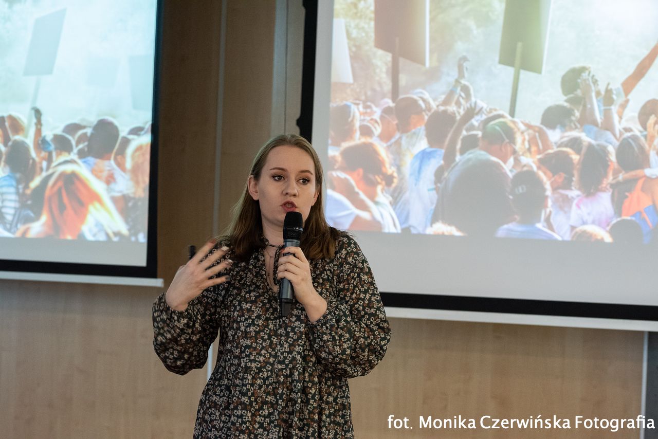 Zastanawialiśmy się „Z kim wyruszamy w przyszłość? Głos pokolenia Z, czyli jacy jesteśmy” przedstawiła z ogromną lekkością Sara Waszyńska.